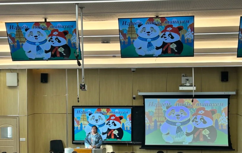 本次联欢会由外籍教师达丽娅主持,首先她对俄罗斯职工、俄语兴趣班员工以及俄语专业师生的到来表示了热烈的欢迎,随后强调了举办本次活动的目的,并为大家讲解了游戏规则。