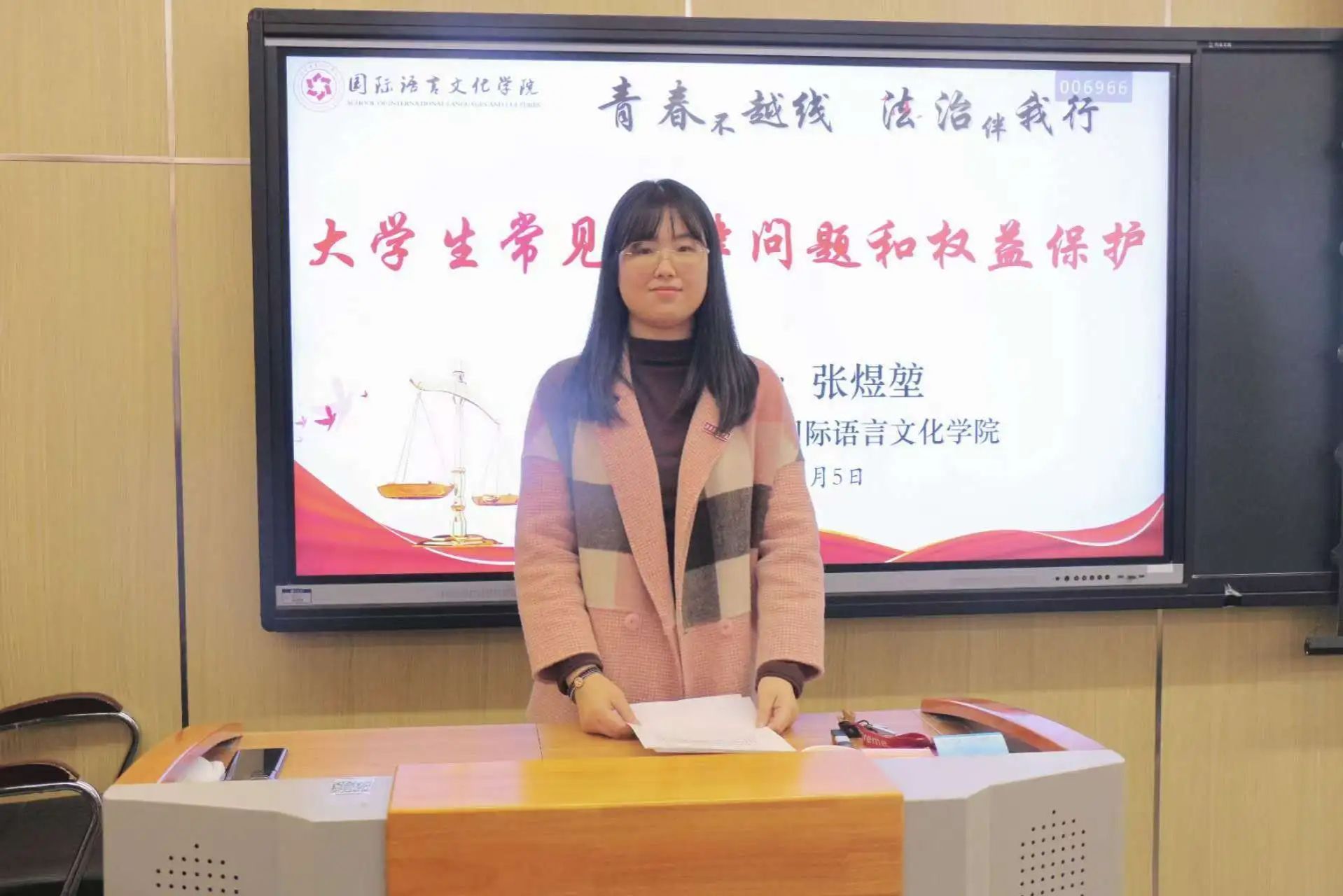 讲座特邀西北政法大学法律硕士、陕西睿思律师事务所高级合伙人张煜堃律师担任主讲,综合办副主任尹娜及部分师生代表参加讲座。辅导员黄丽娜主持讲座。