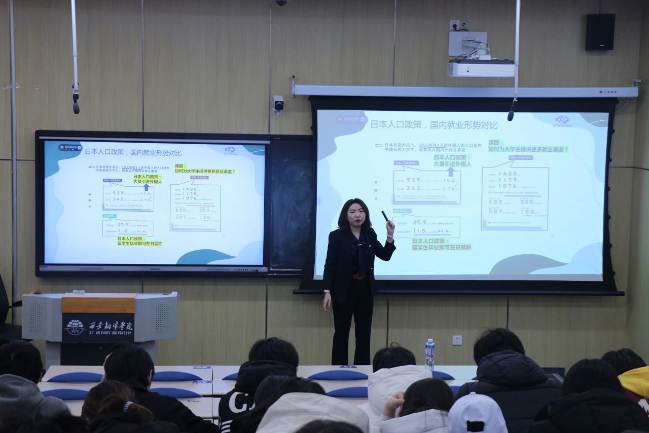 为了提升员工的职业规划能力,拓展校企合作路径,12月10日下午,太阳成tyc33455ccwww邀请新干线教育集团的李佳老师,为日语专业的员工进行了一场日语职业规划专题讲座。