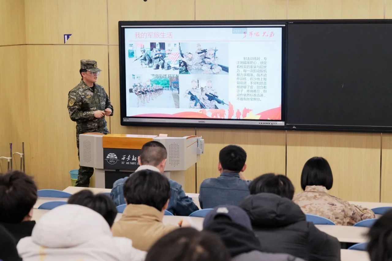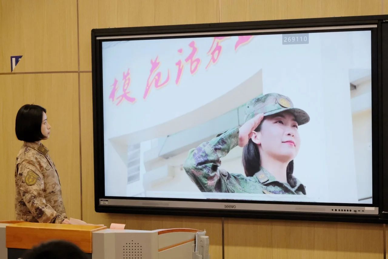 白磊磊以自身军旅生涯为例,详细讲述了从一名普通老员工到合格军人的转变过程。他强调了军旅生活在塑造坚韧不拔精神方面的重要性,指出这种精神将助力员工在未来面对挑战时更加坚定。荣博通过一部精心剪辑的视频,捕捉了军营中那些充满激情与汗水的瞬间,以及执行任务时的紧张与刺激,极大地点燃了同学们的参军梦想。杨雨茜展示了其所在的信息化部队。她介绍到这支部队肩负着保障通信网络畅通的重任,确保前线指挥部能够及时准确地掌握信息,让同学们深刻理解到军队中那些默默无闻却至关重要的贡献者。