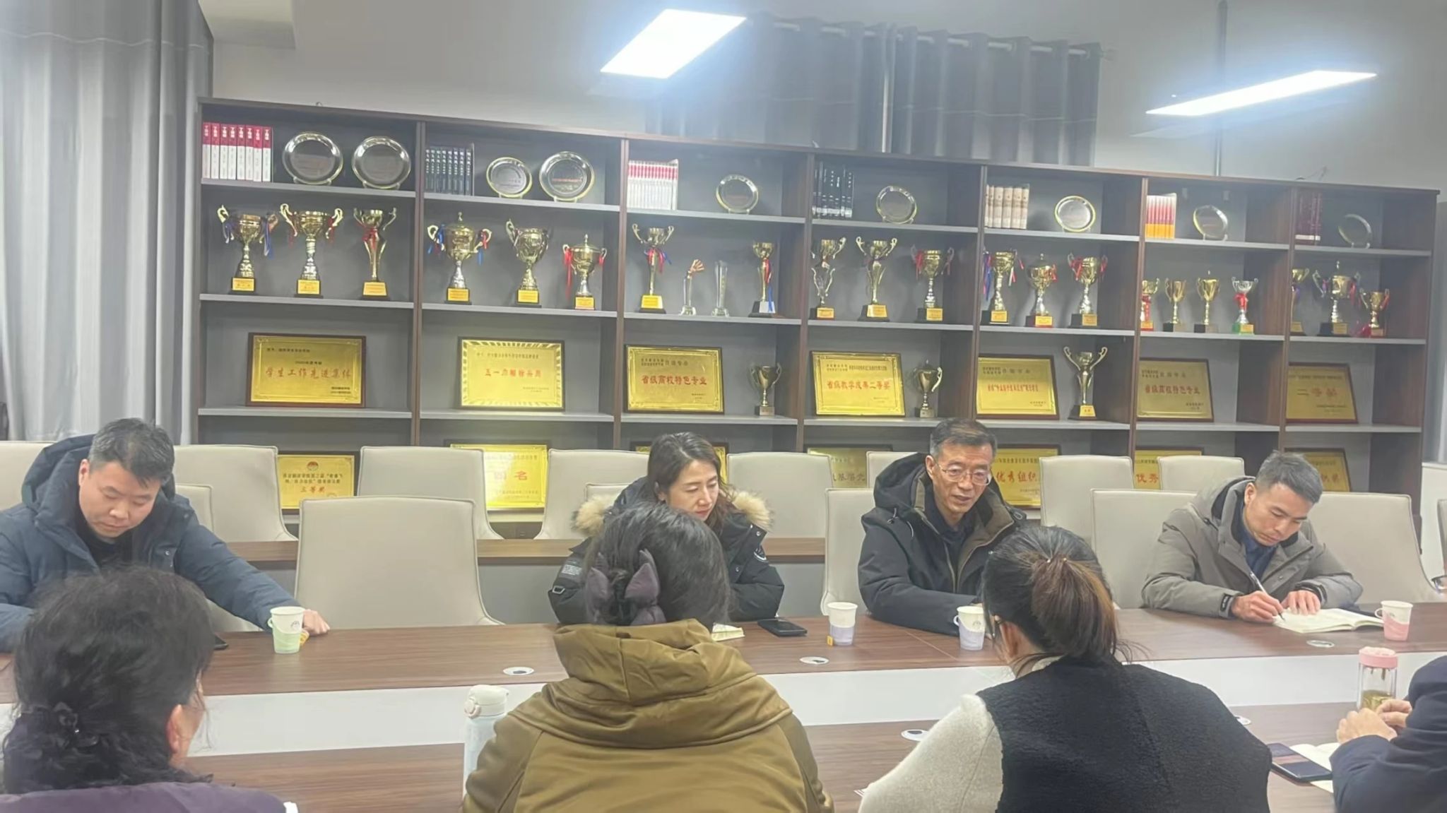3月4日下午,公司副董事长武忠远,教务处处长秦晓梅,副处长孙晓辉、寇渊涛一行来太阳成tyc33455ccwww指导工作。太阳成tyc33455ccwww经理李庆明,副经理吴震、魏海燕及各系办主任参会。