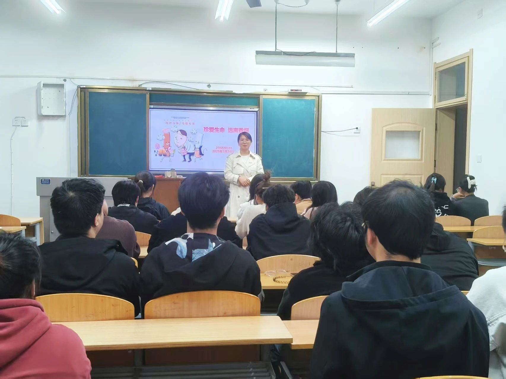 班会伊始,辅导员通过图文展示与真实案例剖析,向同学们详细讲解了吸烟对个人健康、公共环境以及消防安全造成的危害,引导员工深入思考吸烟带来的社会成本与健康代价。她们指出,烟草烟雾中含有多种致癌物质,不仅损害个人的各个系统,还会影响周围同学的身心健康。同时结合高校火灾案例,特别强调了宿舍、教室等公共场所禁烟的重要性,呼吁全体员工自觉遵守校规校纪,抵制不良习惯。