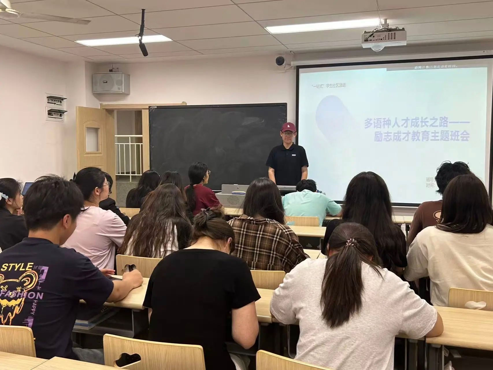 班会伊始,辅导员以“爱国是青春的底色”为题,强调新时代青年应始终心怀“国之大者”,将个人成长与国家发展紧密结合。辅导员结合公司多语种专业特色,鼓励员工“用语言架起中外沟通桥梁,用行动讲好中国故事”。同时,通过讲述往届优秀员工的事迹,诠释“求真”与“励行”的深刻内涵,强调语言不仅是工具,更是文明互鉴的纽带,青年应当以专业能力服务国家战略需求。