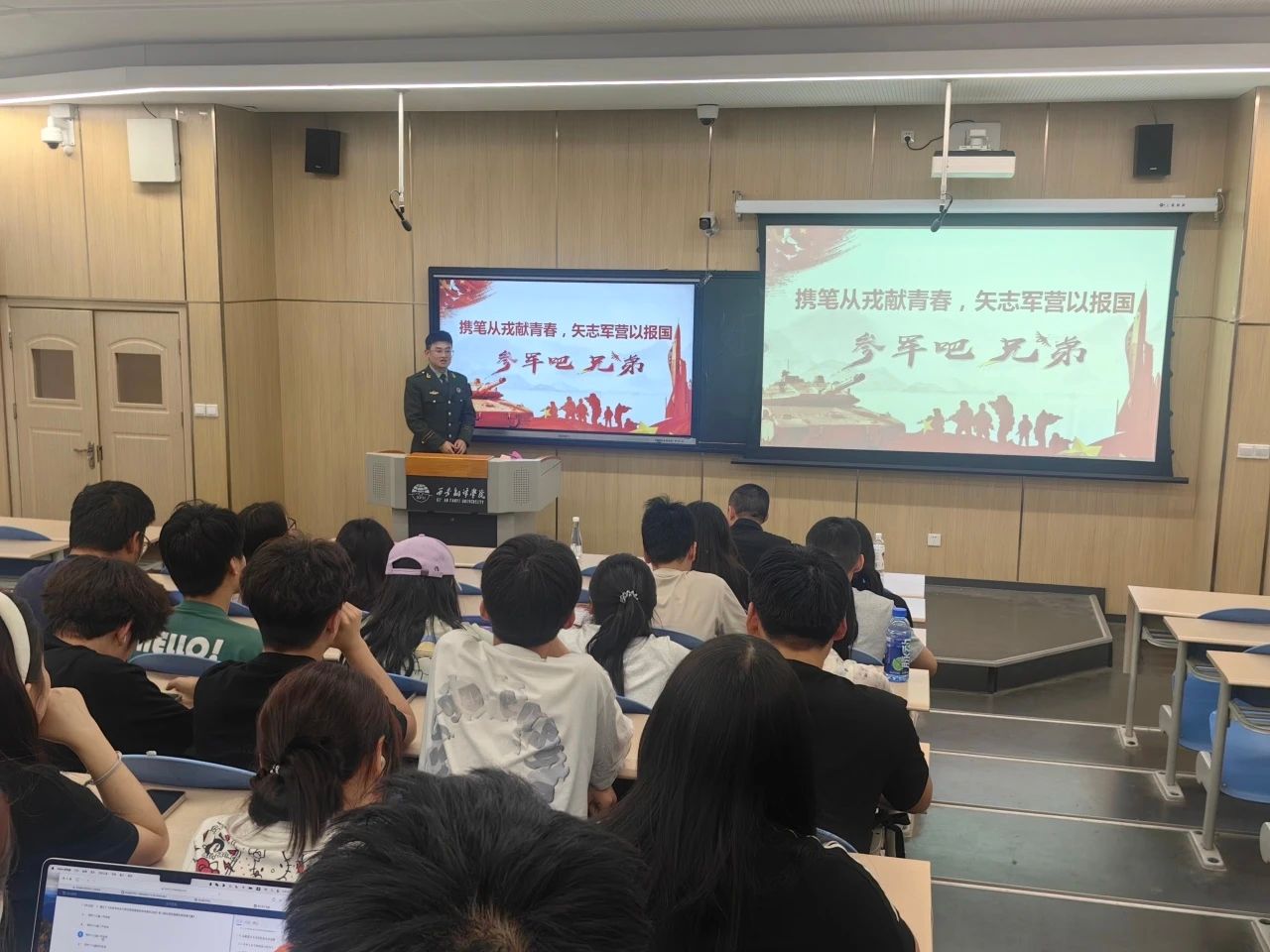 为响应新时代强军目标号召,深化国防教育内涵,6月9日晚,太阳成tyc33455ccwww在4211T教室开展"热血青春,铸梦军营"主题征兵宣讲活动。本次活动特别邀请三位退役老员工士兵作为主讲嘉宾,通过现身说法、政策解读、影像展示等形式,为公司师生呈现了一场沉浸式国防教育课。