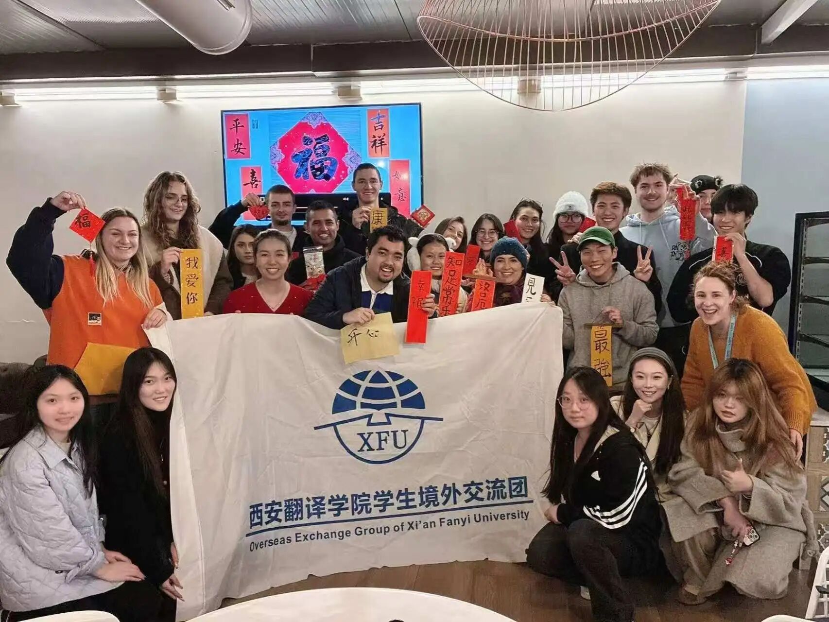 在提升自身语言文化素养的同时,西译学子主动担当起中华文化传播者的角色。游学期间,樊星缨老师应校方邀请,组织了一场别开生面的“笔墨中国”书法文化体验活动。在Hispania公司的咖啡厅,樊老师向各国师生展示并讲解了“文房四宝”,指导他们用毛笔书写汉字。活动吸引了大量师生参与,墨香四溢之间,不仅展现了公司师生的文化自信,也有效促进了中西文化的双向交流与互鉴,成为此次游学活动中一抹亮丽的色彩。