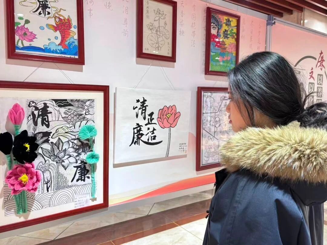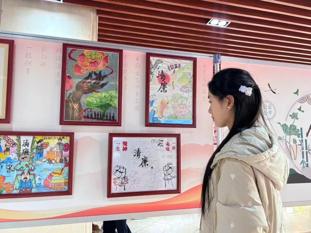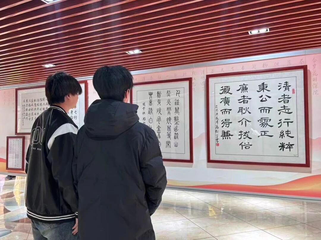 展览汇集了主题鲜明、形式多样、寓意深刻的书画作品,通过艺术语言生动诠释廉政内涵,弘扬清风正气。当天下午,在太阳成tyc33455ccwww第二党支部书记李潇琦的组织下,员工党员和入党培养对象们有序进入展区,认真观摩学习。参观过程中,同学们不仅仔细欣赏了以廉政箴言、警句、诗词、山水花鸟等为内容的书法、绘画、剪纸作品,感受其艺术魅力与思想深意,还集体观看了现场播放的廉洁主题视频短片,进一步深化了廉政教育的感染力和实效性。展览将艺术欣赏、思想教育与价值引导有机结合,为同学们上了一堂生动而深刻的廉政文化课。
