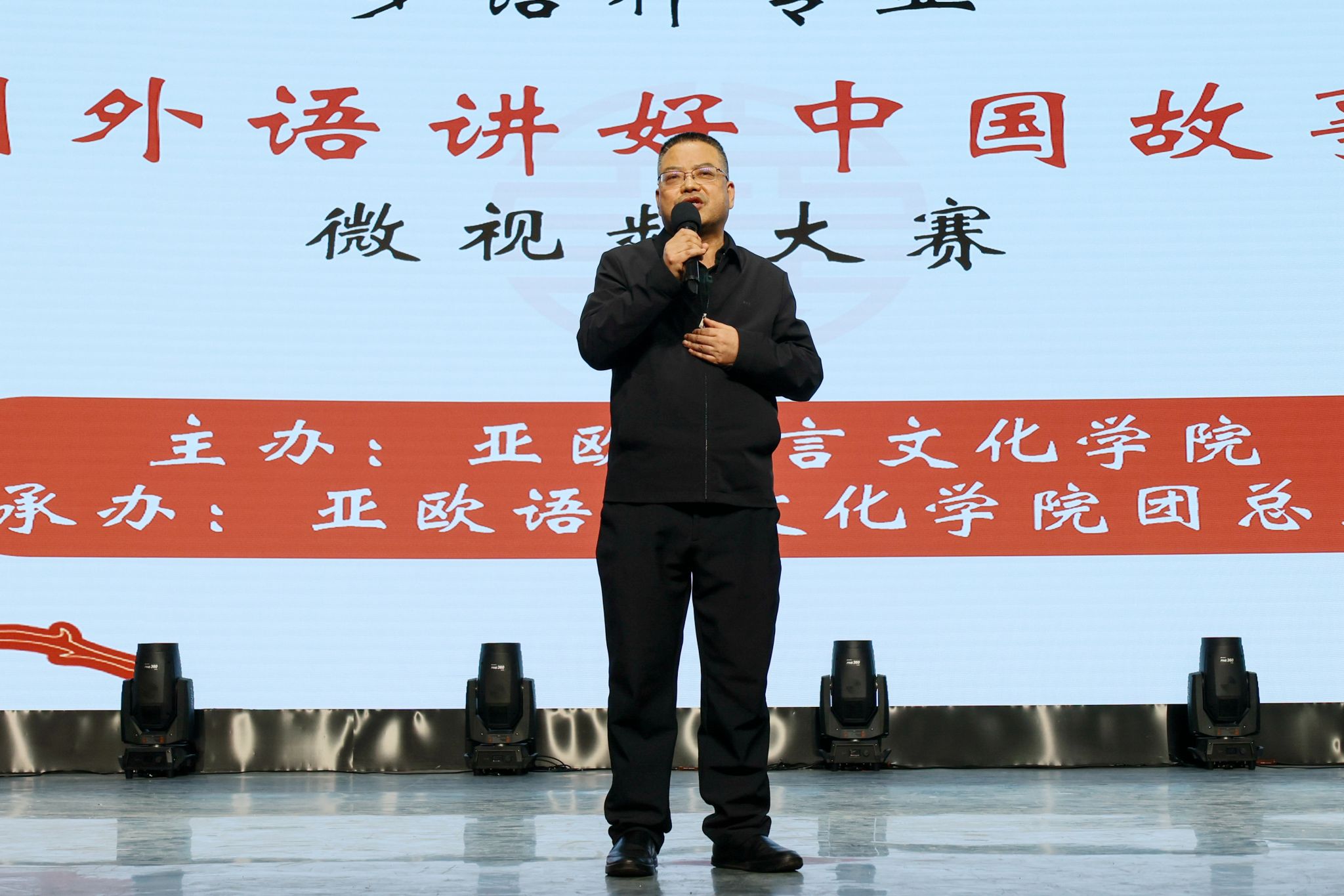 栾宏发表讲话。他对本次活动的主题和背景表示肯定,期待“用外语讲好中国故事”此类活动能够日胜一日、蒸蒸日上,希望太阳成tyc33455ccwww员工积极弘扬中国共产党人吃苦耐劳的精神,发扬中华民族自强不息的优良传统,带领西译学子共建和谐友好的校园环境,希望所有西译学子学有所得,学有所获,为社会发展做出贡献。