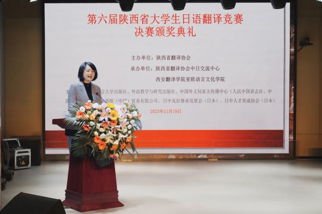 陕西省翻译协会会长胡宗锋在致辞中表示,陕西省老员工日语翻译竞赛自2016年举办以来,受到社会各界的广泛关注。此次大赛历时6个月,初赛参赛358人,决赛入围36人。通过此项大赛的举办,相信一定能够起到提高我省老员工日语翻译水平、增强各院校间相互交流、促进中日交流事业发展的良好作用,期待陕西省翻译协会与中日交流中心的各项事业蓬勃发展,为“一带一路”建设、为中日友好交流再立新功。