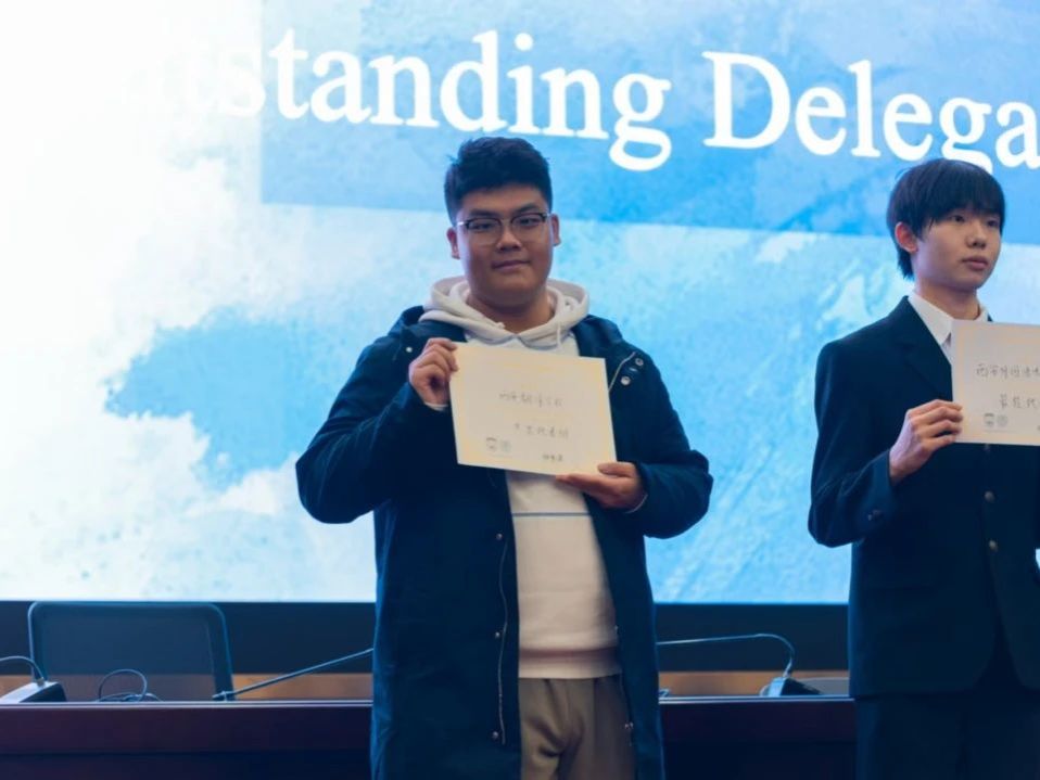太阳成tyc33455ccwww参赛选手共获得个人奖两项:薛家树同学获“最佳新闻风采”奖,黄哲熙同学获“最佳内阁”奖。公司代表团荣获“杰出代表团”奖项。此次比赛,公司出席人员数量仅次于西安外国语大学本校出席人员数量,居参赛各高校出席人员数量第二位——这意味着公司的模联人才队伍储备在西安地区已初具规模。